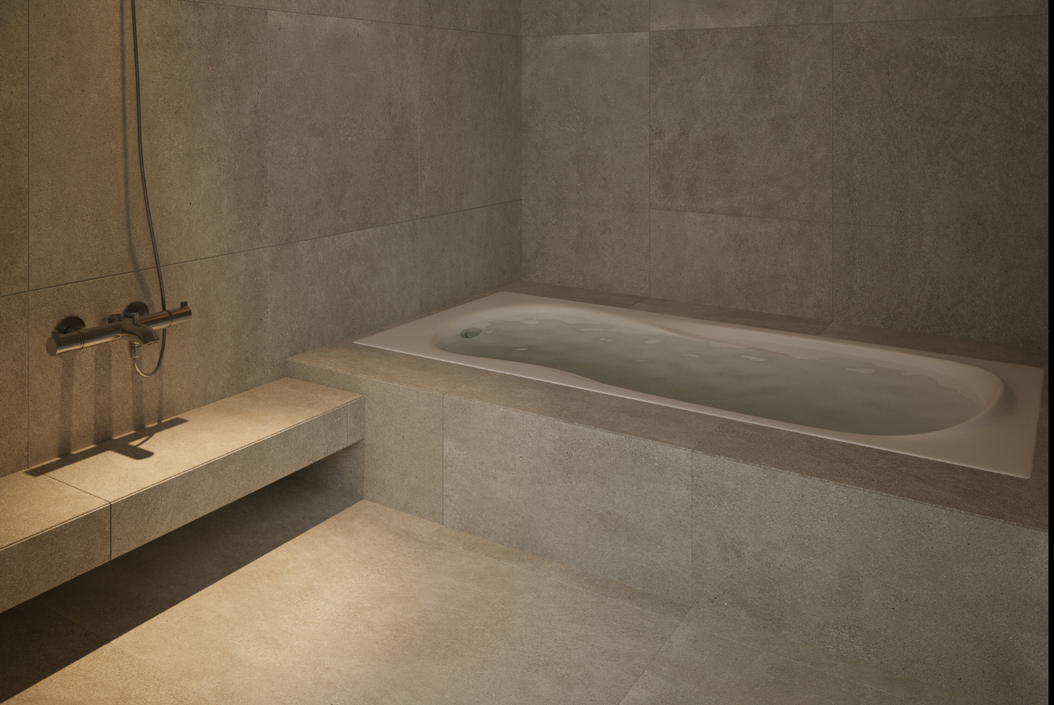 触れるたびに伝わる素材の質感、やわらかな光が落ちるタイルの陰影。そのすべてが、一日の終わりに心を解きほぐす場所として、上質な時間をつくり出します。
