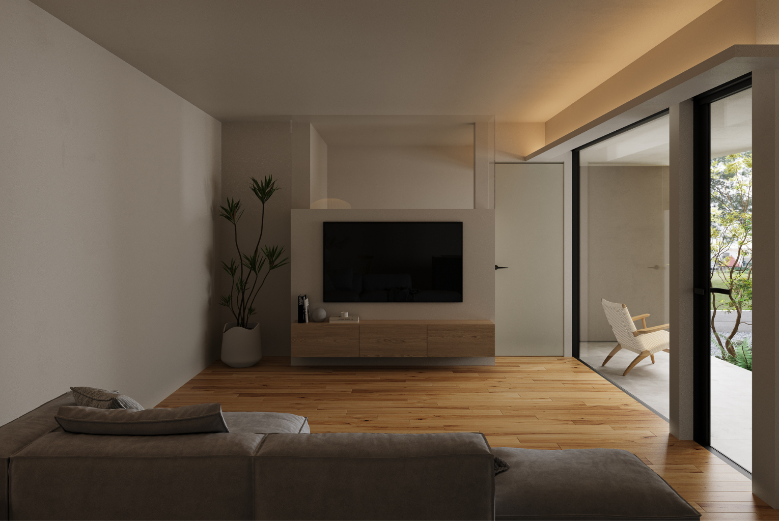 23帖のL型リビングが描く、広がりと奥行き