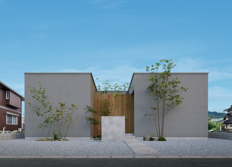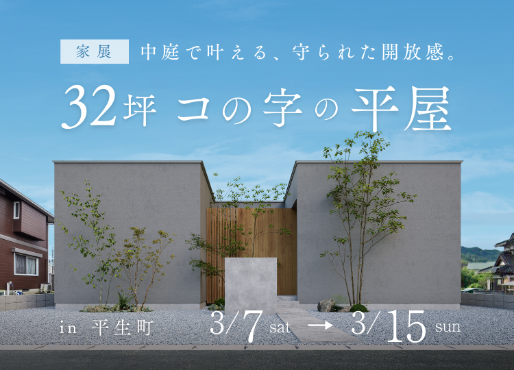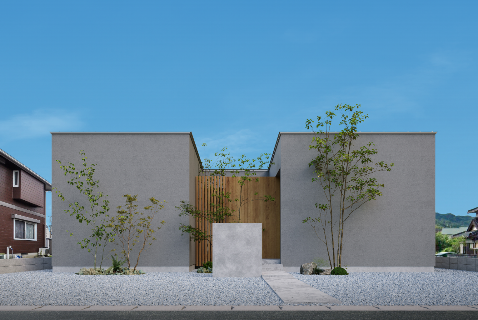 82.9坪の敷地に建つ、32.7坪のコの字平屋。